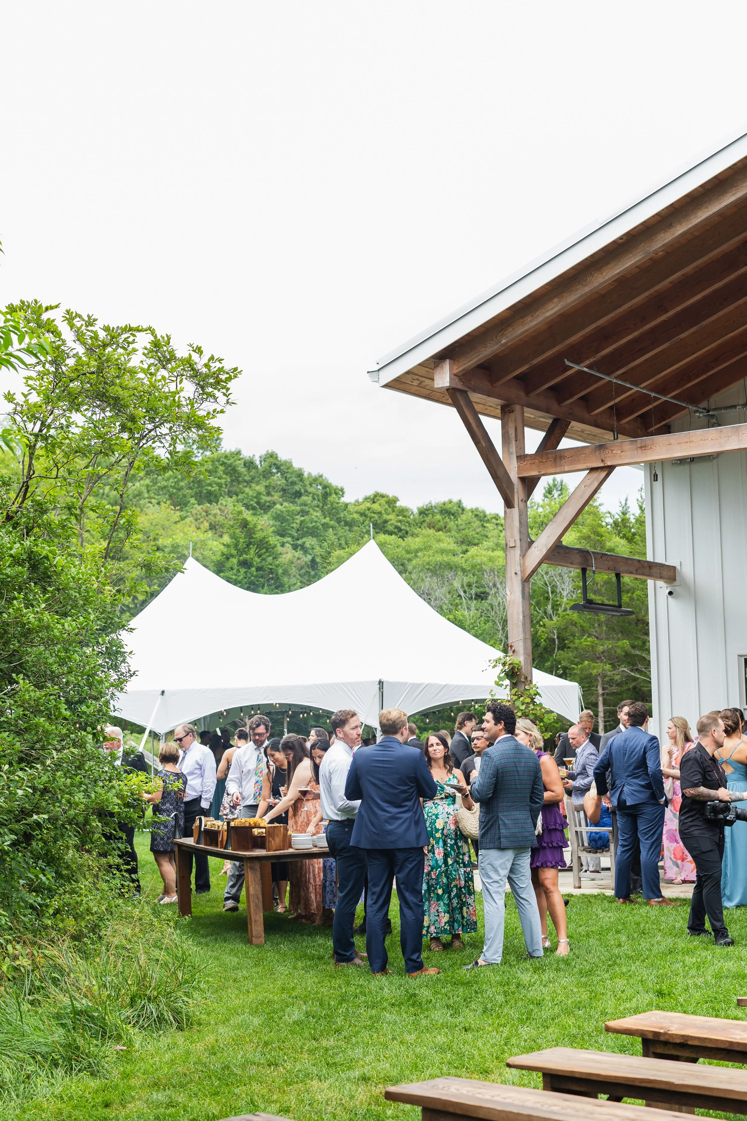 For weddings with guest counts over 200, a tent rental is required to comfortably accommodate your full reception. While our timber frame barn remains the heart of the celebration, the tent provides additional dining space so every guest has room to relax and enjoy the evening.