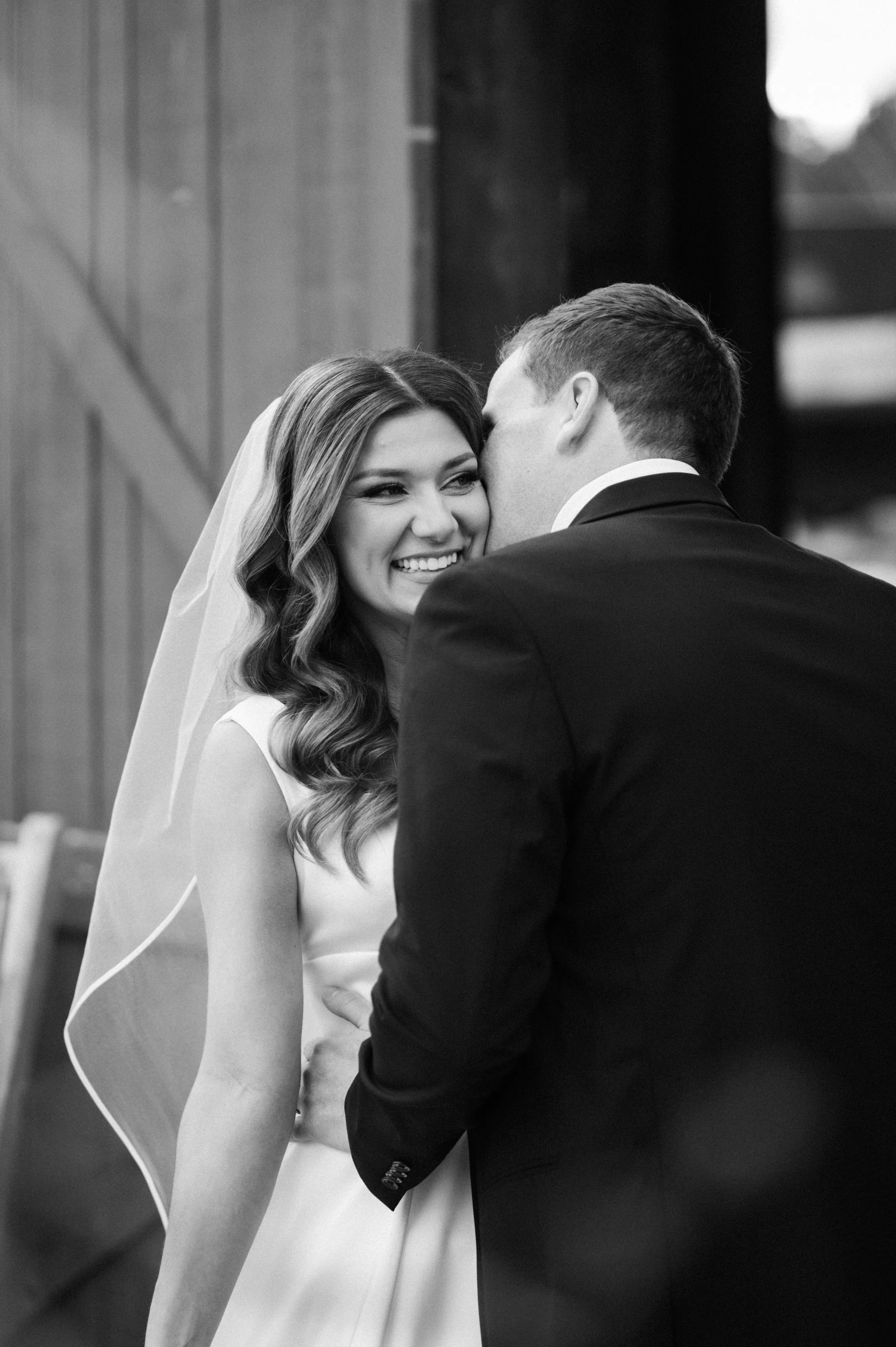 Lauren and Jack’s wedding felt like one of those winter days where everything just clicks into place. The morning had its own rhythm. Jack was up in The Loft with his guys, keeping it light, shooting some pool, not overthinking anything. Over at the Farmhouse, Lauren’s side of the day had a little more buildup. Music on, finishing touches, that quiet kind of excitement that starts to settle in. Then she stepped out onto the porch for a first look with her bridesmaids and yeah, safe to say they were not subtle about it. Exactly how it should be!